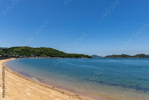landscape, view, seascape, sandbeach, sea, coast, coastline, bay, shore, water, sky, blue, travel, tour tourism, nature, seto inland sea, torii, gateway, shikoku, japan