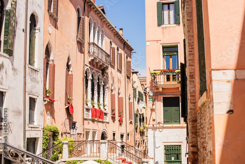 Landscape of Venice views, concept of vacation in Italy. Old part of city center. Ideas for journey.