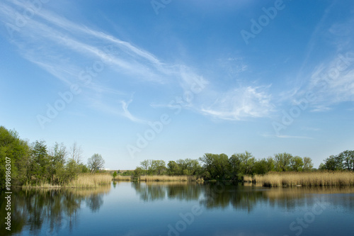 lake, water, sky, landscape, nature, river, blue, cloud, tree, summer, forest, duck pond, tree, cloud, green, outdoors, calm, beauty, tranquil, spring, park, mirror, grass, view
