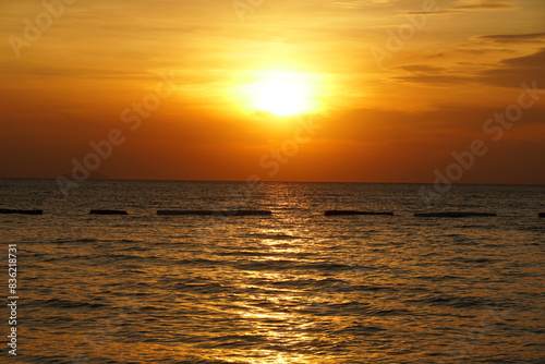 Landscape Tranquil scene of sunset over the sea at pattaya Thailand.