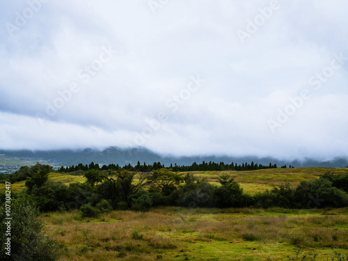 mountain, landscape, japan, aso, nature, view, scenery, travel, asia, sky, road, adventure, countryside, cloud, green, beautiful, sightseeing, terrain, earth, exploration, mist, wilderness, natural, elevation, topography, vibrant, peaceful, majestic, calmness, autumn, geology, scenic, horizon, grass, mountain, hill, vale, meadow, attraction, attractive, tour tourism, field, tree, rural