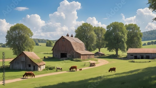 house, landscape, farm, sky, field, grass, architecture, building, nature, country, rural, green, countryside, home, meadow, bungalow, mountain, barn, village, old, farmhouse, cloud, summer, rustic, church