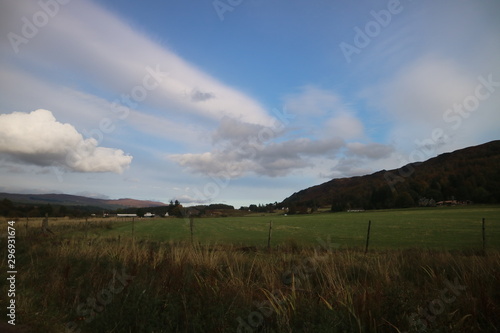 sky, landscape, field, cloud, grass, nature, meadow, cloud, blue, summer, green, mountain, horizon, rural, agriculture, hill, weather, view, storm, land, outdoors, farm, sunset, sun, tree