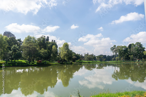 landscape with lake and blue sky
