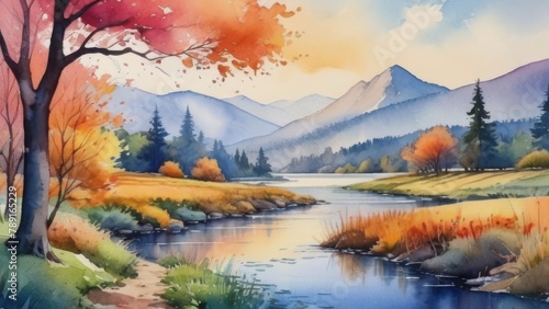 landscape with mountains and lake