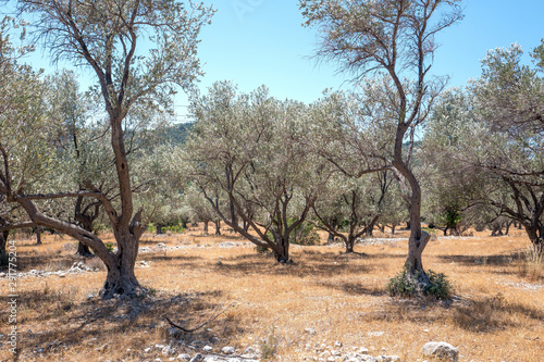 Landscape with olive trees in Samos-Marathokabos on Samos island in Greece
