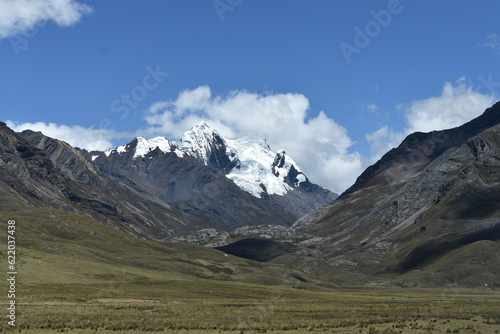 mountain, landscape, mountain, sky, nature, snow, alps, peak, vale, rock, view, cloud, high, cloud, travel, hill, summer, panorama, river, alpine, glacier, grass, trekking, green, outdoors