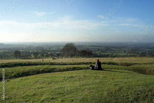 landscape, sky, field, grass, nature, meadow, green, rural, countryside, blue, cloud, hill, tree, cloud, country, view, horizon, sun, beautiful, ireland, autumn, people, panoramic, fog