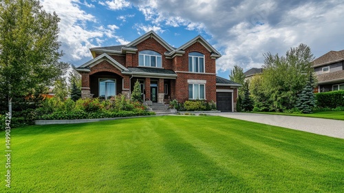 Landscaping and Lawn Care in an Estate Home with Green Grass in St. Albert, Alberta, Canada