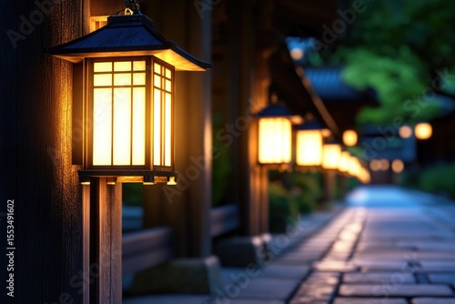 japanese, garden, traditional, lantern, stone, pathway, dusk, lighting, scenery, cultural, ambience, oriental, aesthetic, historic, setting, evening, atmosphere, glowing, asian, nature, path, night, zen, design, temple, paseo