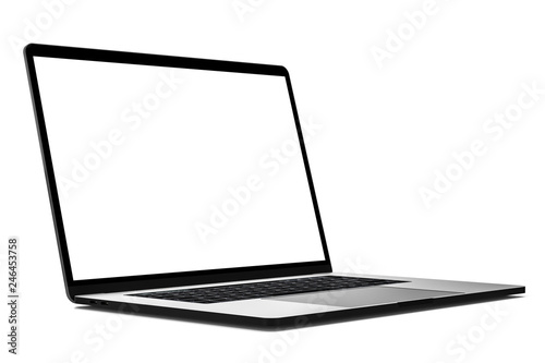 Laptop angled blank screen mockup isolated all in focus