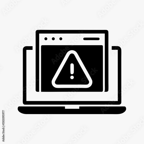 laptop, error, warning, system, alert, computer, screen, digital, device, problem, issue, glitch, virus, online, web, cyberspace, security, notification, danger, attention, trouble, bankruptcy, fractured, bug, software, program, icon, symbol, graphic, vector, black, white, simple, minimal, modern, clean, element, art, illustration, browse, safety, risk, message