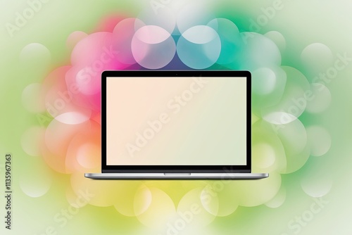 Laptop Mockup, Green Bokeh, Blank Screen, Template, Design, Background, Product, Stock Photo