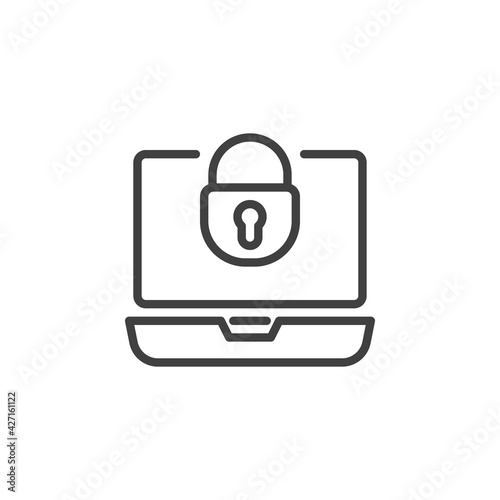 laptop, security, lock, notebook, computer, icon, line, outline, linear, vector, logotype, pictogram, symbol, signs, clip art, design, illustration, thin, editable, graphic, simple, pixel, honed, protection, technology, datum, access, password, safety, cyber, information, privacy, screen, padlock, identity, private, open, display