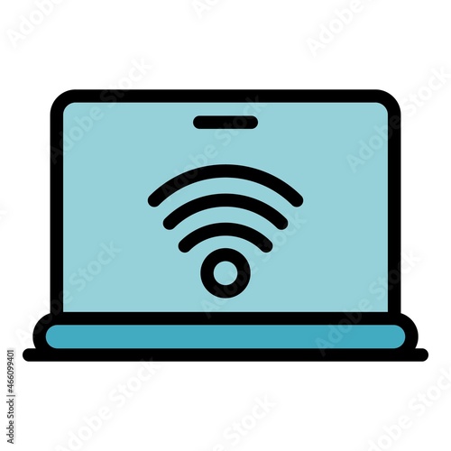 Laptop wireless remote access icon. Outline laptop wireless remote access vector icon color flat isolated