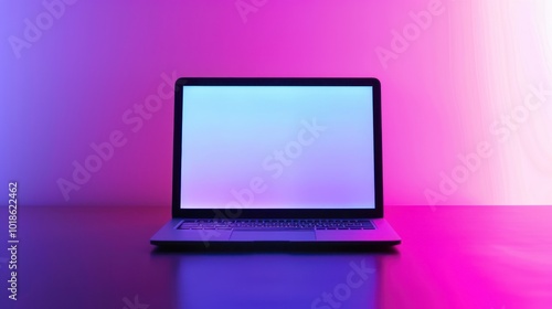 laptop, computer, technology, device, screen, keyboard, digital, contraption, electronic, modern, neon, light, glow, purple, pink, gradient, background, studio, minimalism, blank, empty, surface, modernity, tech, connectivity, innovation, workspace, design, desktop, portable, work, productivity, office, home, style, trend, aesthetic, sharpened