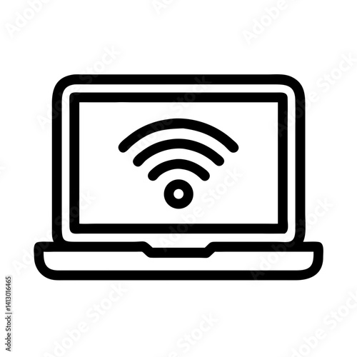 Laptop with Wi-Fi Icon – Remote Work and Connectivity Symbol for Digital Nomads
