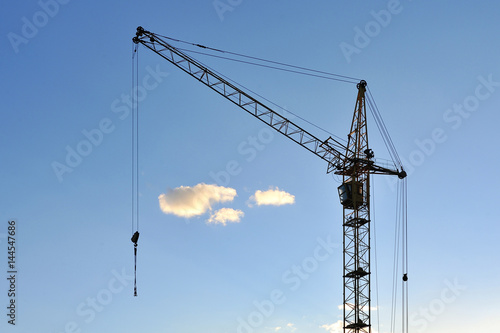 blue, building, construction, crane, development, engineering, equipment, evening sky, high, industrial, industry, machinery, project, silhouette, sky, steel, structure, tall, technology, work