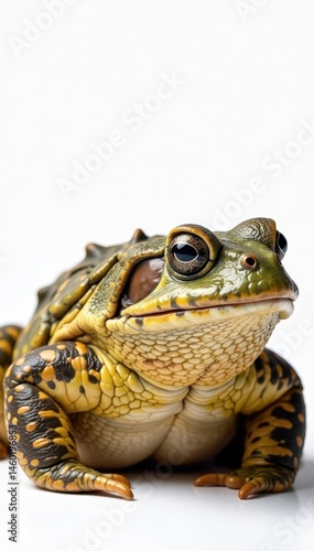 serene, posture, peaceful, skin, biology, photo, frog, eye, large, resting, wildlife, fauna, reptile, image, abdomen, leg, exotic, amphibian, still, studio shot, closeup, giant, isolated, zoology, big, toad, bumpy, macro, animal, texture, detail, speckled, green, herpetology, white background, nature, brown, warty