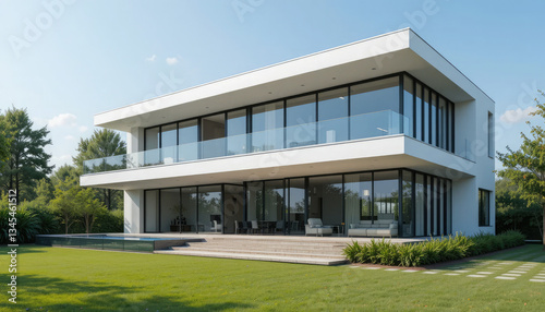 Large glass windows, clean architecture, and a modern, minimalist home with a secluded