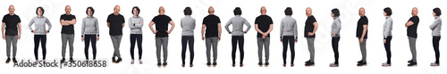 man, woman, couple, isolated, white, activewear, people, group, set, background, full, front, back, side, view, collage, length, bald, standing, middle-aged, sport, tracksuit, pose, photogenic, female, male, collection, look, portrait, sneaker, beard, same, person, attractive, real people, body, caucasian, clothes, studio shot, fitness, fit, adult, casual attire, 50s