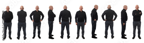 man, standing, isolated, full, length, white, portrait, background, attractive, collage, collection, compilation, large, composition, set, group, same, looking, male, bald, look, happy, smile, side, profile, sideway, back, front, rear, belly, view, sneaker, person, confident, middle-aged, adult, posing, casual clothes, natural, 1, single, real people, stomach, body, fats, fat, weight