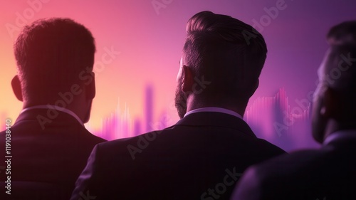 Large group of shareholders watching a presentation on financial performance, digital charts and stock market data, formal business meeting