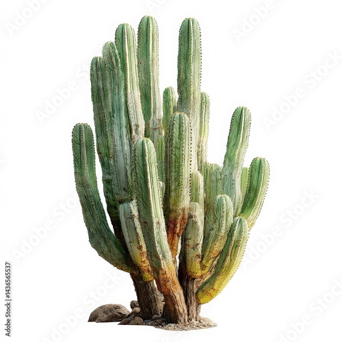 Large Multi-Stemmed Cactus Isolated on White Background.