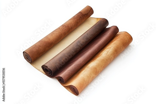Large parchment scrolls or vintage paper banners placed alone on a white background
