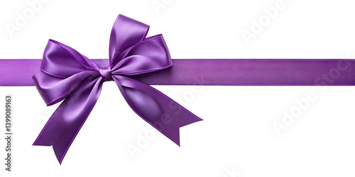 large purple bow on the left side of a straight ribbon, isolated on a transparent background - ideal for banners or frames easter, christmas, birthdays, gifts, valentine's day