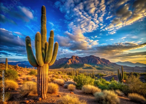 saguaro, desert landscape, blue skies, nature, flora, desert plant, natural beauty, botanical, cactus, scenic, ecotourism, picturesque, adventure, tranquil, serene, exploration, wilderness, travel destination, scenic view