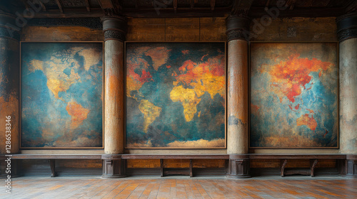 world map, vintage, interior design, global, geography, colourful, wallpainting, historical, decor, art, travel, exploration, antique, architecture, gallery, exhibition, cultural, landscape, painting, room, space, heritage, design, artistic, traditional, vibrant, colours, interior, classic, old, rustic, scenery, home, office, environment, visual, craftsmanship, detailed
