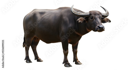 water buffalo, buffalo, animal, mammal, farm animal, farm animal, domesticated, bovine, horn, powerful, large, sturdy, dark, black, isolated, white background, cut-out, studio shot, full body, half face, standing, clean, clear, sharp, detailed, professional, high-quality, commercial, agriculture, farming, rural, asia, wildlife, strength, power, nature, robust, beast, herbivore, large animal, wild, fauna