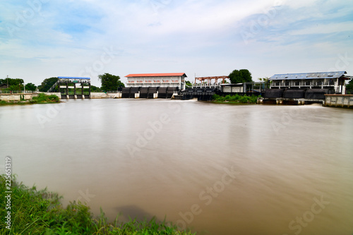Large water pipe pump flood water and drain, captured with a slow shutter speed.