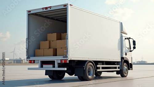 Large white truck its back door open loading Optimizing Delivery: Boxes Packed