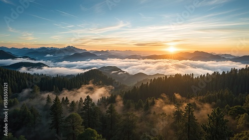 mountain, pine, late summer, misty, panoramic, scenery, timberland, tree, cloud, fir-wood, travel, calmness, golden light, early morning, scenic, hiking, camping, adventure, pine tree, mountain landscape