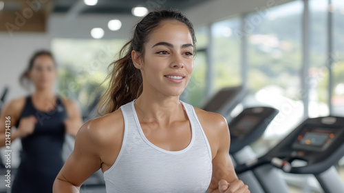 hispanic, latin, mexican, brazilian, determination, horizontal, muscle, muscular, physical, run, vitality, well-being, strength, jogging, smile, effort, practice, weight, motivation, person, health, club, power, strong, training, aerobic, body, fitness, sport, exercise, treadmill, indoor, female, physical exercise, endurance, gym, portrait, routine, active, modern, woman, athlete, cardio, young adult, lifestyle, equipment, bodycare, copy space, activewear