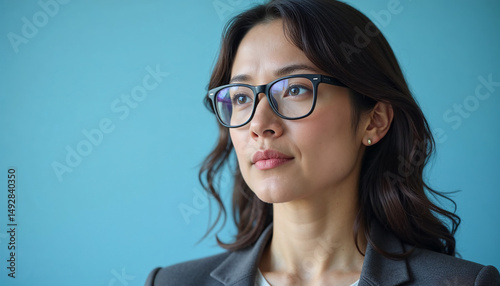 latina, businesswoman, blue background, empowerment, leadership, workplace, professional woman, working woman, ambition, determination, self-confidence