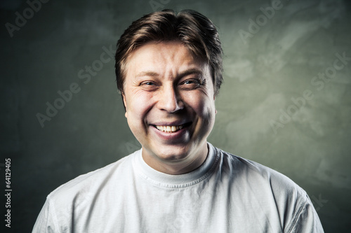 Laughing young man over gray
