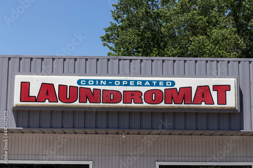Laundromat sign. Coin operated Laundromats provide a place for travelers to wash their clothes while on the road.