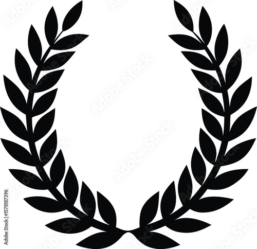 laurel wreath, chaplet, leaf, bay leaf, olive branch, victory, award, achievement, honour, success, champion, winner, black-and-white, monochrome, symbol, icon, graphic design, illustration, classical, ancient, traditional