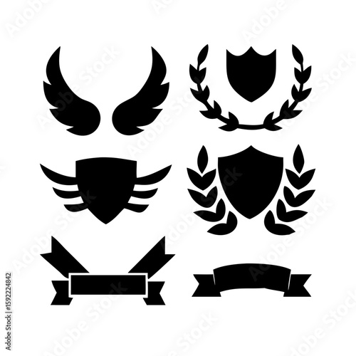 shield, badge, illustration, design, vector, award, crest, heraldic, label, signs, frame, classic, element, emblem, set, vintage, banner, chaplet, icon, mediaeval, symbol, achievement, elegant, graphic, insignia, laurel, ornament, ribbon, silhouette, success, heraldry, honour, protection, wing, arm, blank, coat, collection, isolated, retro, template, black, decoration, decorative, logotype, border, editable, elegance, gold