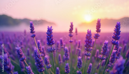 Lavender blossoms illuminated at dawn, natural beauty and tranquility