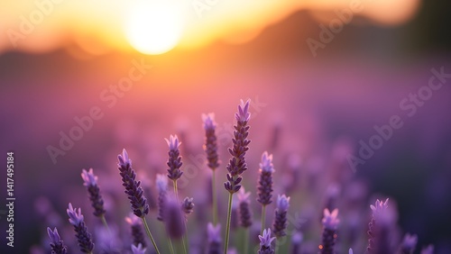 Lavender Field at Sunset: Aromatic Purple Flowers in a Serene and Dreamy Landscape