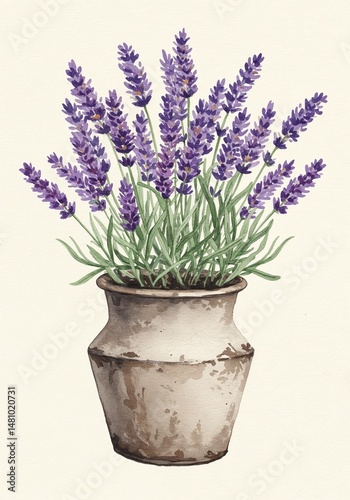 lavandula, flower, pot, vintage, watercolor, botanical, purple, green, nature, decoration, home, interior, plant, gardening, artistic, illustration, summer, natural, aesthetic, foliage, aromatic, herb, style, rural, relaxing, decorative, rustic, hand-painted, soft, blossom, ambience, beauty, vibrant, garden, earthy, calmness, freshness, growth, environment, calming, art, painted, bloom, creativity, charme, well-being, floral