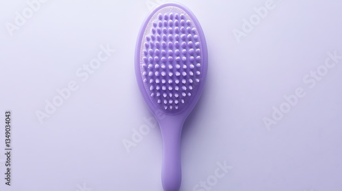 brush, massage, scalp, hair, lavandula, purple, tool, care, hygiene, beauty, health, wellness, plastic, comb, grooming, cleaning, spa, treatment, therapy, relaxation, soothing, comfort, cleansing, exfoliating, stimulating, circulation, blood, flow, texture, smooth, soft, bristle, handle, oval, shape, accessory, equipment, product, item, object, design, colours, pastel, closeup, studio