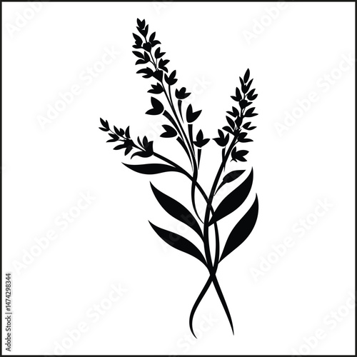 lavandula, silhouette, flower, plant, herb, clip art, vector, outline, nature, botanical, graphic, icon, design, art, black, white, minimal, print, cute, leaf, floral, stem, garden, illustration