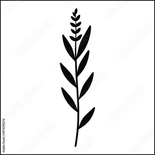 lavandula, silhouette, clip art, flower, herb, plant, vector, nature, art, design, graphic, icon, outline, black, white, floral, leaf, stem, cute, minimal, print, garden, illustration, botanical