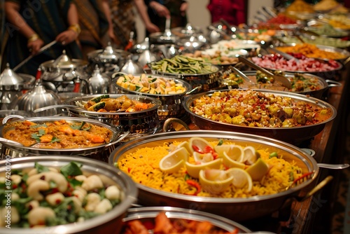 indian, buffet, food, traditional, dish, cookery, colourful, variety, spice, rice, curry, vegetable, lentil, appetiser, entree, dessert, celebration, feast, party, event, catering, aromatic, flavorful, savoury, sweet, spicey, herb, garnished, platter, bowl, serving, festive, cultural, culinary, epicure, delicious, mouth-watering, diverse, rich, texture, vibrant, presentation, dining, meal, banquet, hospitality