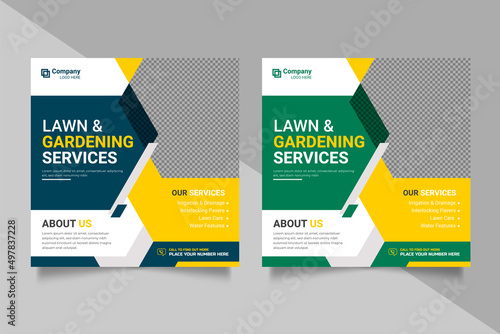 Lawn and garden care maintenance Social Media Post and Web Banner Template. gardener, Mowing poster, leaflet, poster design. grass, gardener design